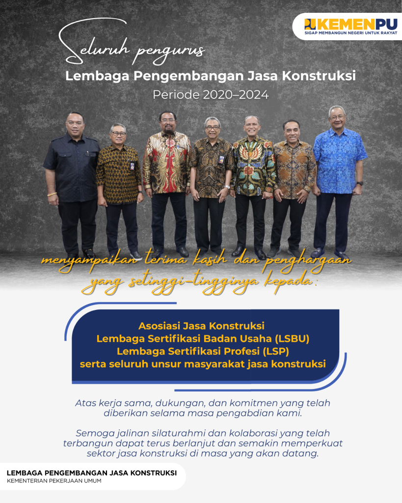 Dewan Pimpinan dan Seluruh Anggota Asosiasi Kontraktor Seluruh Indonesia mengucapkan selamat dan sukses atas Pelantikan Pengurtus LPJK Periode 2025 – 2029, semoga amanah dalam bekerja dan mengedepankan kepentingan bersama Masyarakatan Jasa Konstruksi.